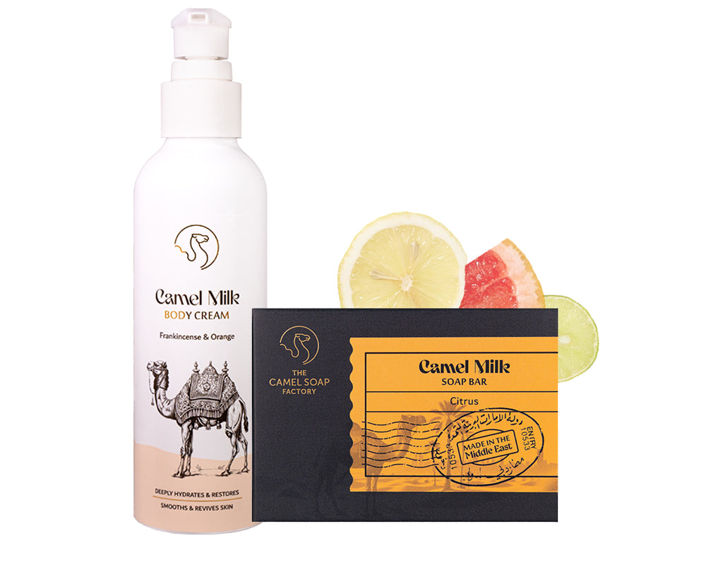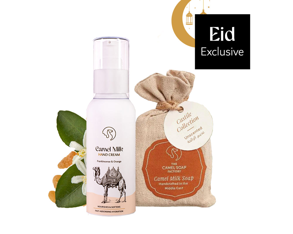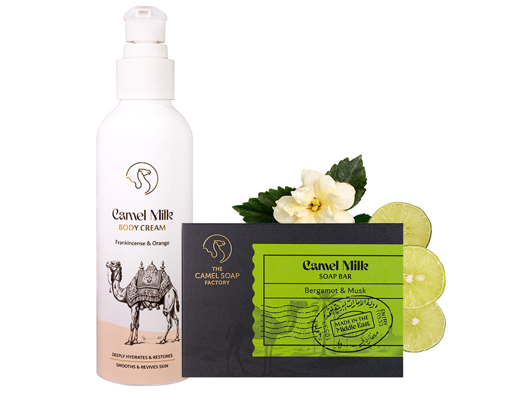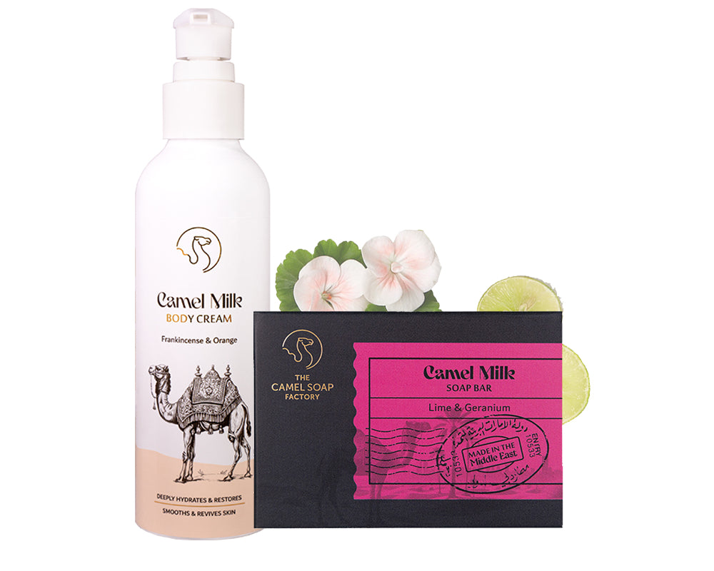 Over thousands of years, the region has embraced camel milk for health and well-being. With rich and naturally occurring lactic acid, alpha hydroxy Acids (AHAs), vitamins A, C and E, and a wealth of minerals, it makes an exceptional ingredient for all our soaps and creams.