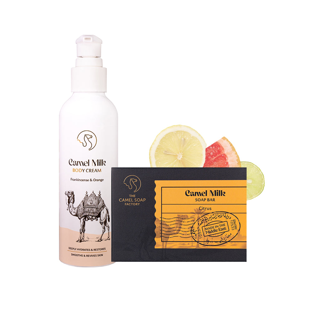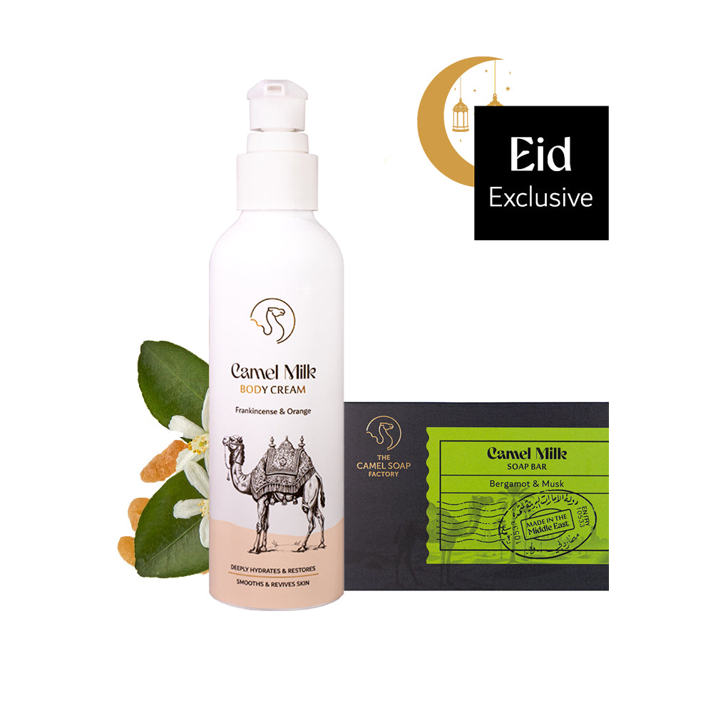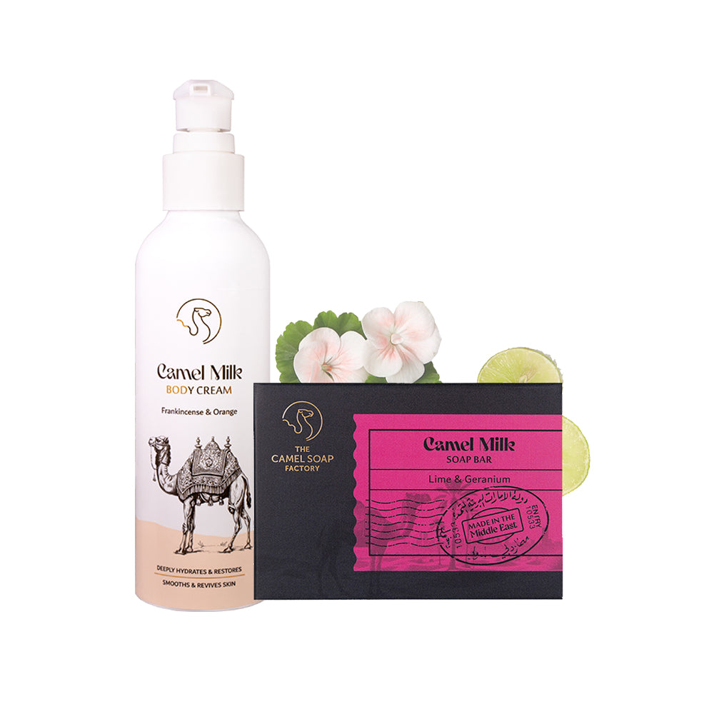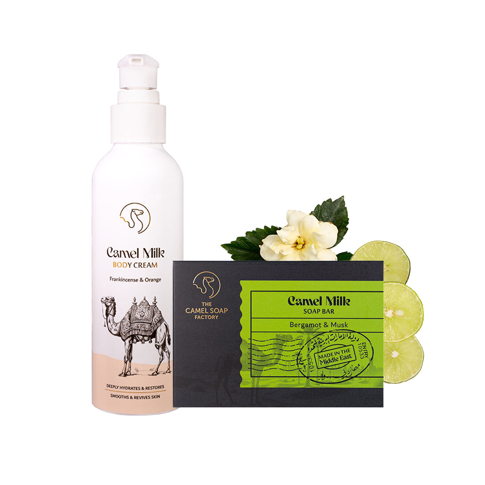 Over thousands of years, the region has embraced camel milk for health and well-being. With rich and naturally occurring lactic acid, alpha hydroxy Acids (AHAs), vitamins A, C and E, and a wealth of minerals, it makes an exceptional ingredient for all our soaps and creams.