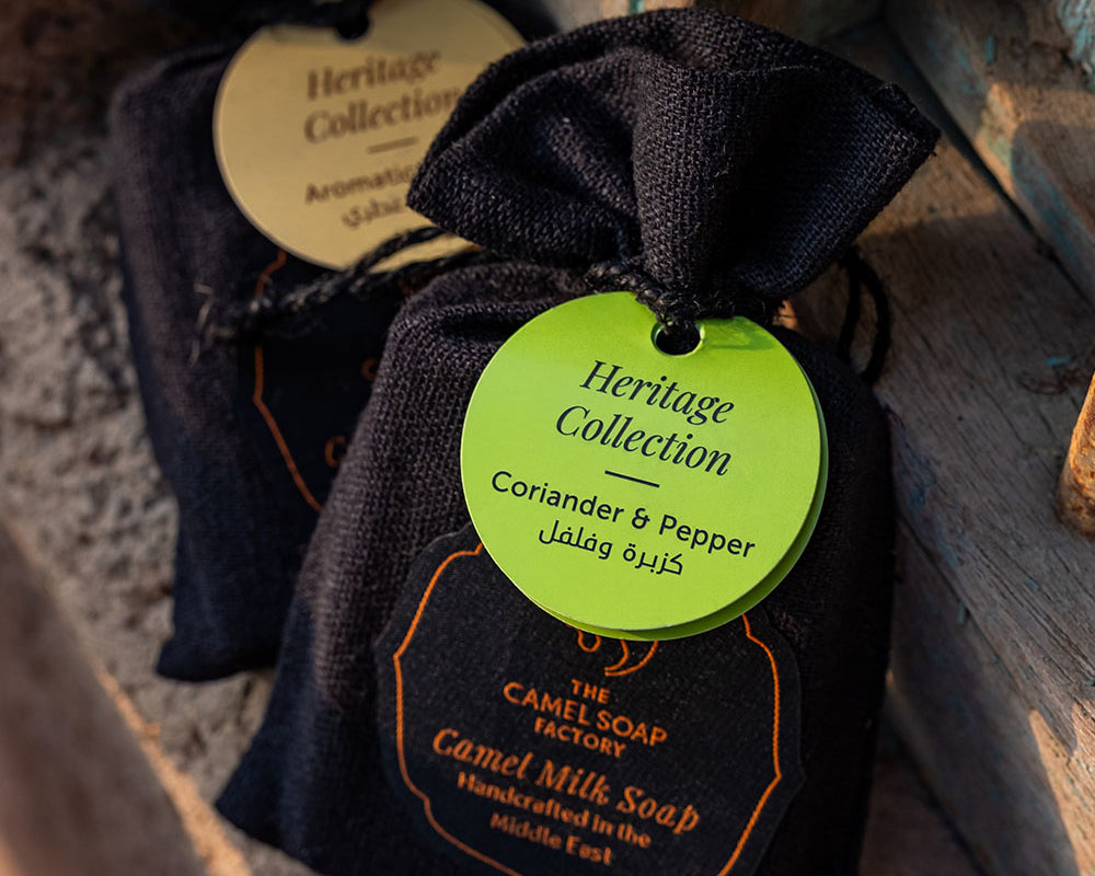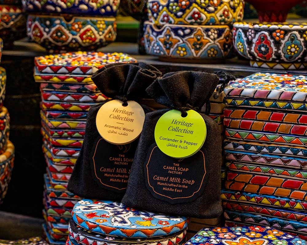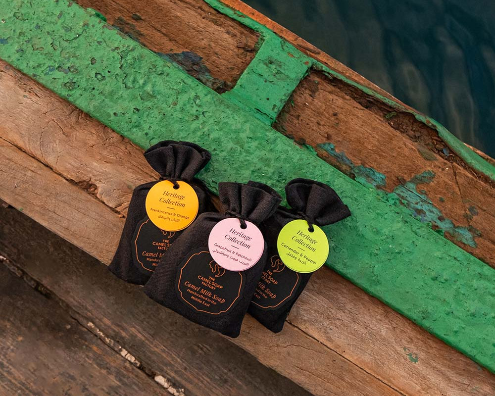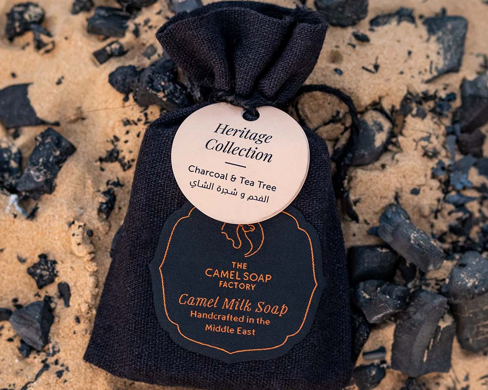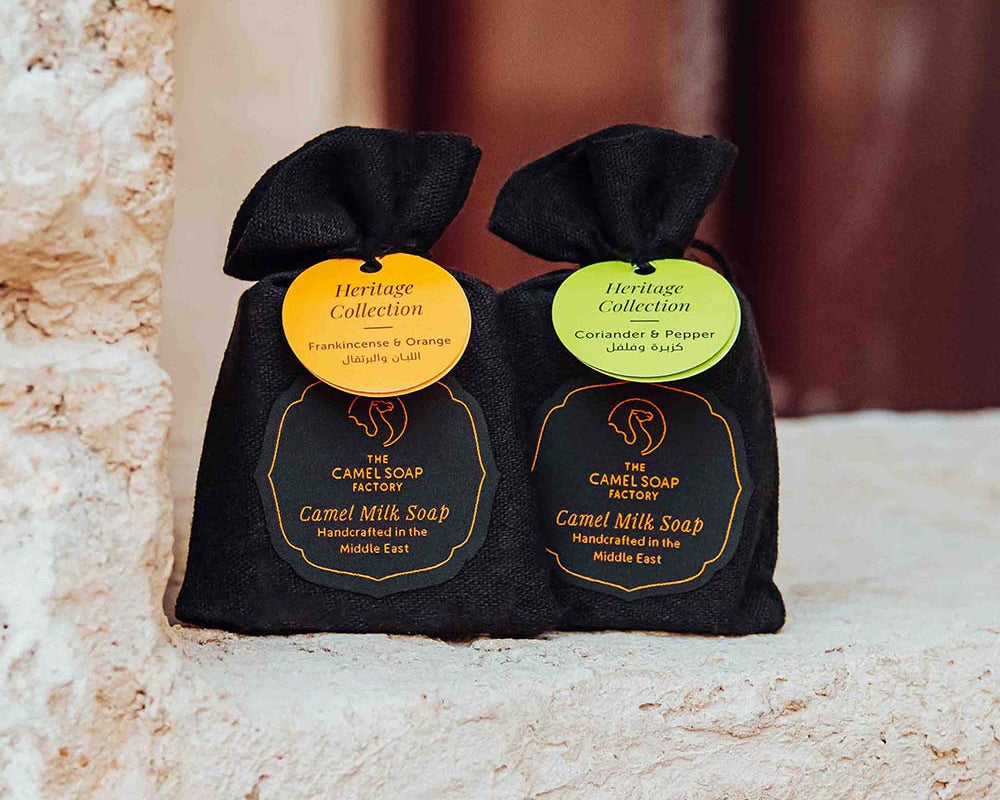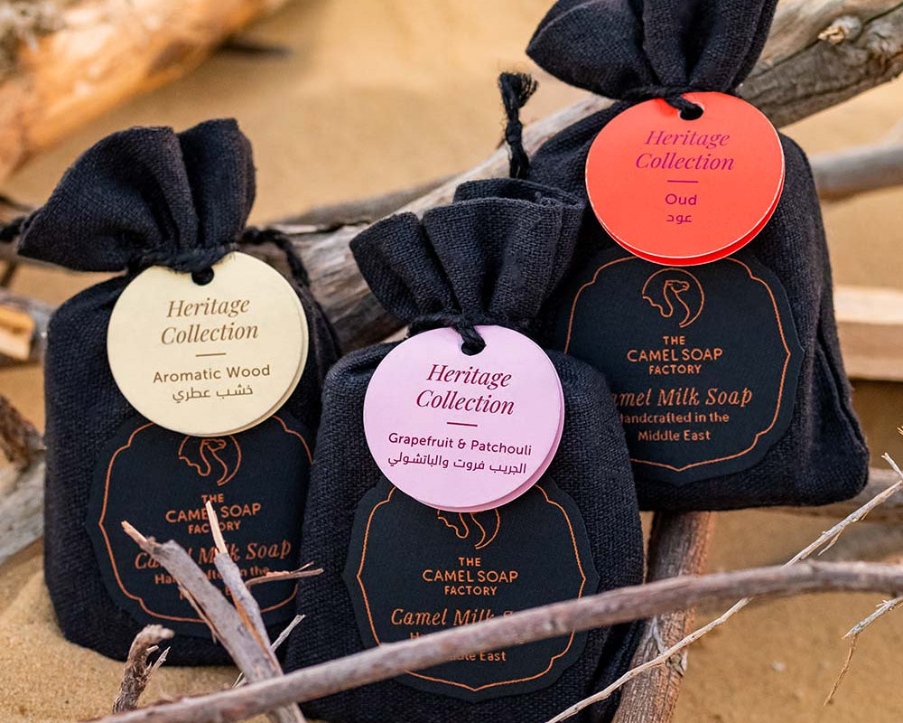 مصنوعة من حليب الإبل الطازج ، الغني بالزيوت الأساسية، والزبدة المغذية، والزيوت الملطفة ، وتجسد مجموعتنا المصنوعة يدويًا التراث الغني للشرق الأوسط . يتم تصنيع كل صابون يدويًا بدقة من خلال عمليات صنع الصابون بالطريقة التقليدية الصديقة للبيئة ، مما يقدم لك منتجًا من قلب الصحراء ".
