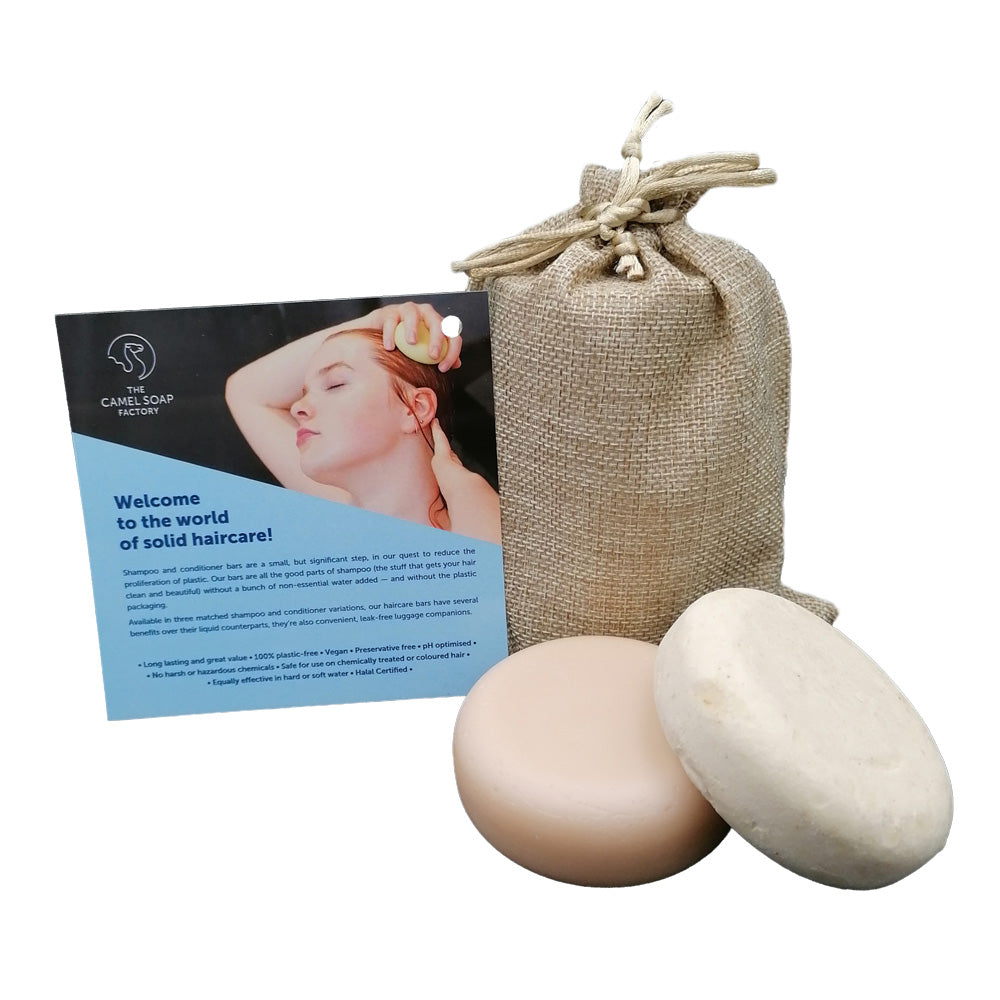 Our solid haircare tester set - featuring a Sidr-infused solid shampoo and conditioner bar- is the perfect place to begin. Sidr, a centuries-old Middle Eastern ingredient, is prized for its ability to strengthen and nourish hair naturally. This gentle duo cleanses, conditions, and restores balance to the scalp while helping reduce breakage and soothe irritation. The result? Soft, resilient, and beautifully healthy hair.